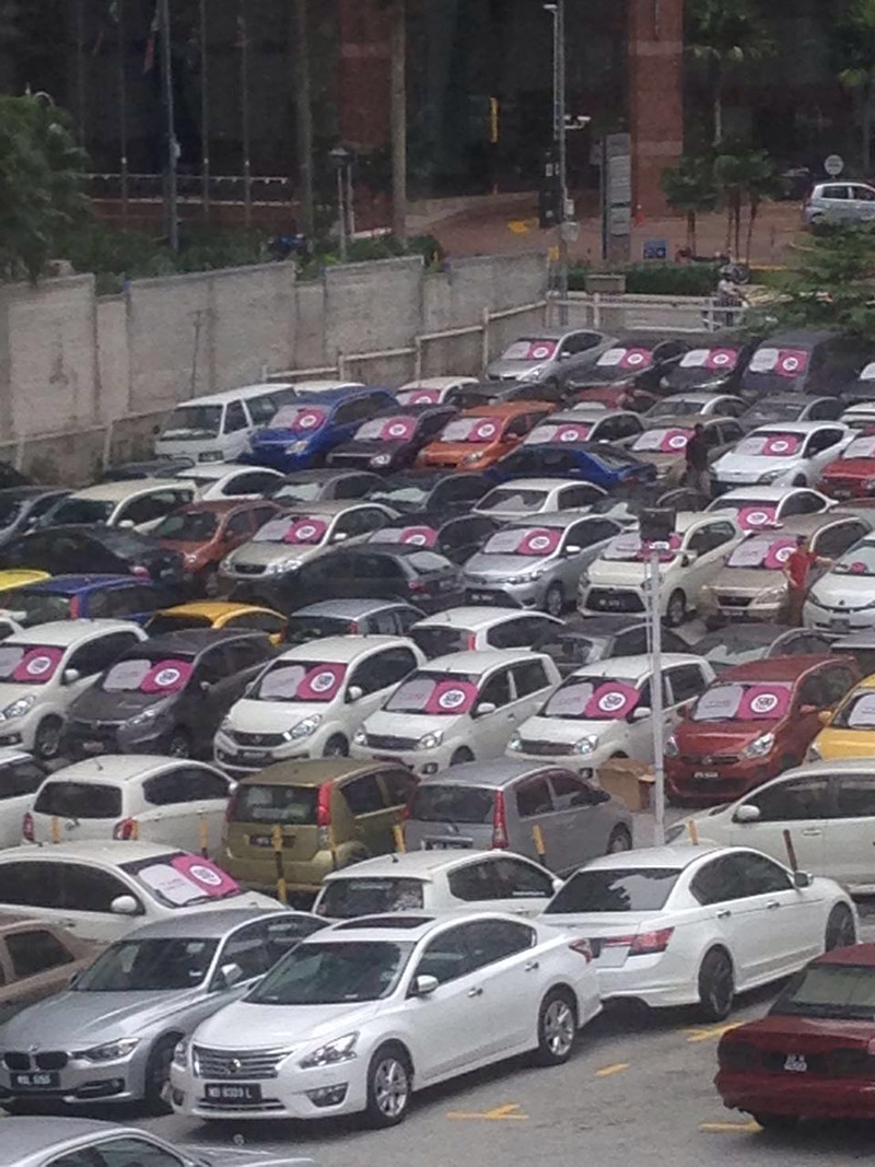 In collaboration of TIME Magenta Invasion, TIME Magenta invaders are giving away car sunshades to lucky car owners in KL city.